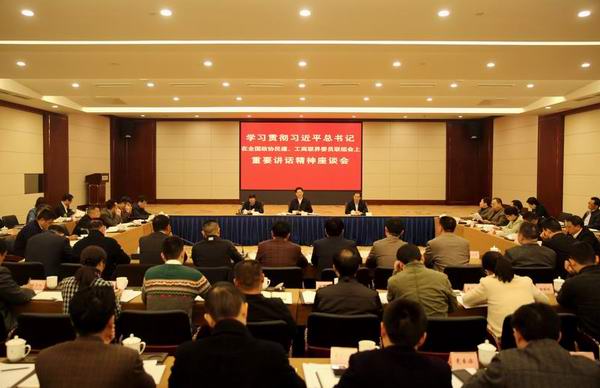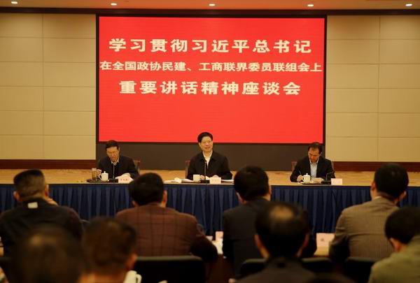 会议传达了习近平总书记在全国政协民建、工商联界委员联组会上的重要讲话精神和省委王东明书记重要批示精神,组织了民建、工商联界非公有制经济代表人士交流学习心得,并对全省学习贯彻习近平总书记重要讲话精神进行了安排部署。