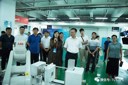 王继平一行观看了唐工院《建设国家优质高职院校,服务京津冀协同发展国家战略》的专题汇报片,考察了唐工院校企共建企业——曹妃甸合心机器人系统集成有限公司和拓又达科技集团、与中车唐山机车车辆有限公司共建的动车组技术实训区、液压有源检测项目、省级院士工作站——快速制造技术中心,与在唐工院学习交流的爱尔兰都柏林理工学院留学生纳赛尔·莫杰塔巴进行交谈并询问了唐工院与爱尔兰合作项目情况。调研中,田秀萍、马良军介绍了唐工院的办学、实训、校企合作、集团化办学和人才培养等基本情况。