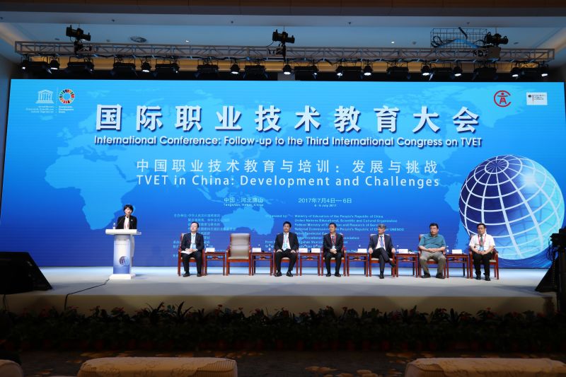 7月4日-6日,国际职业技术教育大会在河北省唐山市召开,大会由联合国教科文组织、中国教育部、德国联邦教育与研究部、河北省人民政府、中华职业教育社联合主办,唐山市人民政府承办。国务院副总理刘延东致信大会,希望各国共同努力,把握全球趋势,立足本土实践,积极推动职业教育发展及2030年教育目标的实施,为增进人民福祉、促进全球可持续发展做出新贡献。中国教育部副部长孙尧、河北省副省长徐建培、唐山市人民政府市长丁绣峰、联合国教科文组织第三十八届大会主席斯坦利·斯马塔、德国教育与研究部代表霍夫曼先生出席大会开幕式并分别致辞,中华职业教育社苏华副理事长出席会议并作专题演讲。来自德国、法国、加拿大、葡萄牙、南非、韩国等全球81个国家的教育部部长、政府官员,以及联合国教科文组织、经济合作与发展组织、欧洲培训基金会等政府间组织与非政府组织、基金会和工业界代表500余人与会。