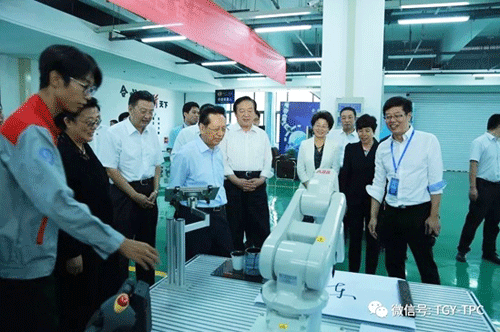 陈昌智副委员长视察唐山工业职业技术学院(机器人书法绘画)