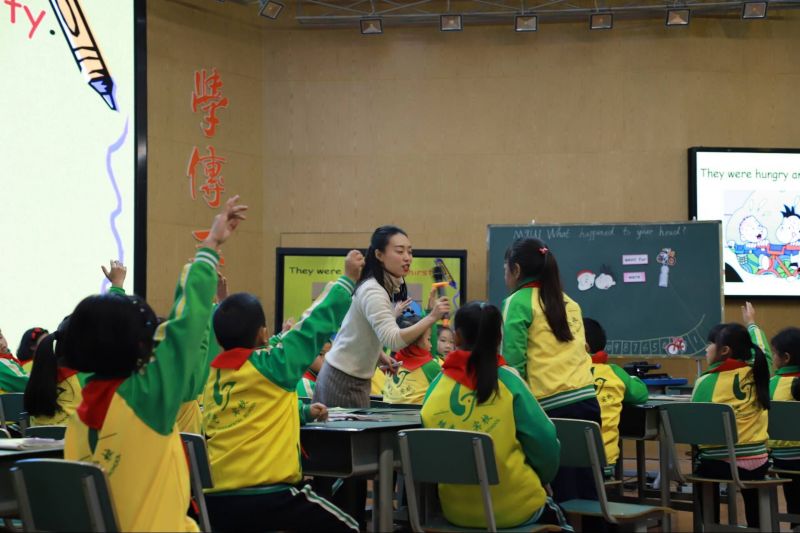 吴老师将这堂课定位为故事教学课,课堂上鼓励学生运用已知知识去自由表达、引导孩子把自己融入到故事里,大胆说出自己的想法。这堂课以学生为主体,充分调动和发挥学生的主观能动性,参与面广。层层设疑让学生自己去推测故事的发展,小组合作讨论,拓展了学生的思维,激发了学生的想象力。