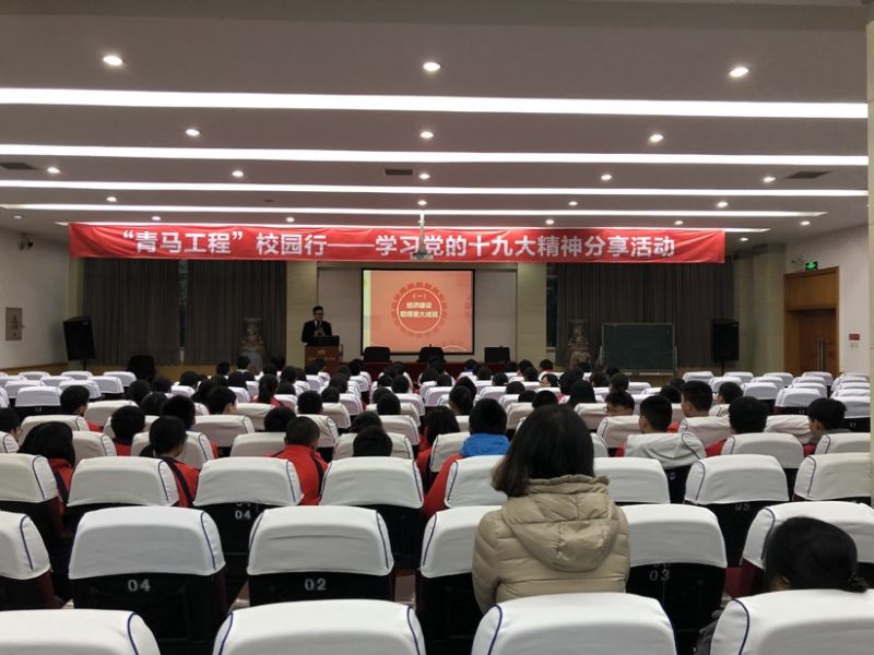 党的十九大是在全面建成小康社会决胜阶段、中国特色社会主义进入新时代的关键时期召开的一次十分重要的大会,也是党领导人民开启全面建设社会主义现代化国家新征程的一次大会。11月30日下午由德阳外国语学校校团委主办的“青马工程”校园行──学习党的十九大精神分享活动在多功能会议厅举行。