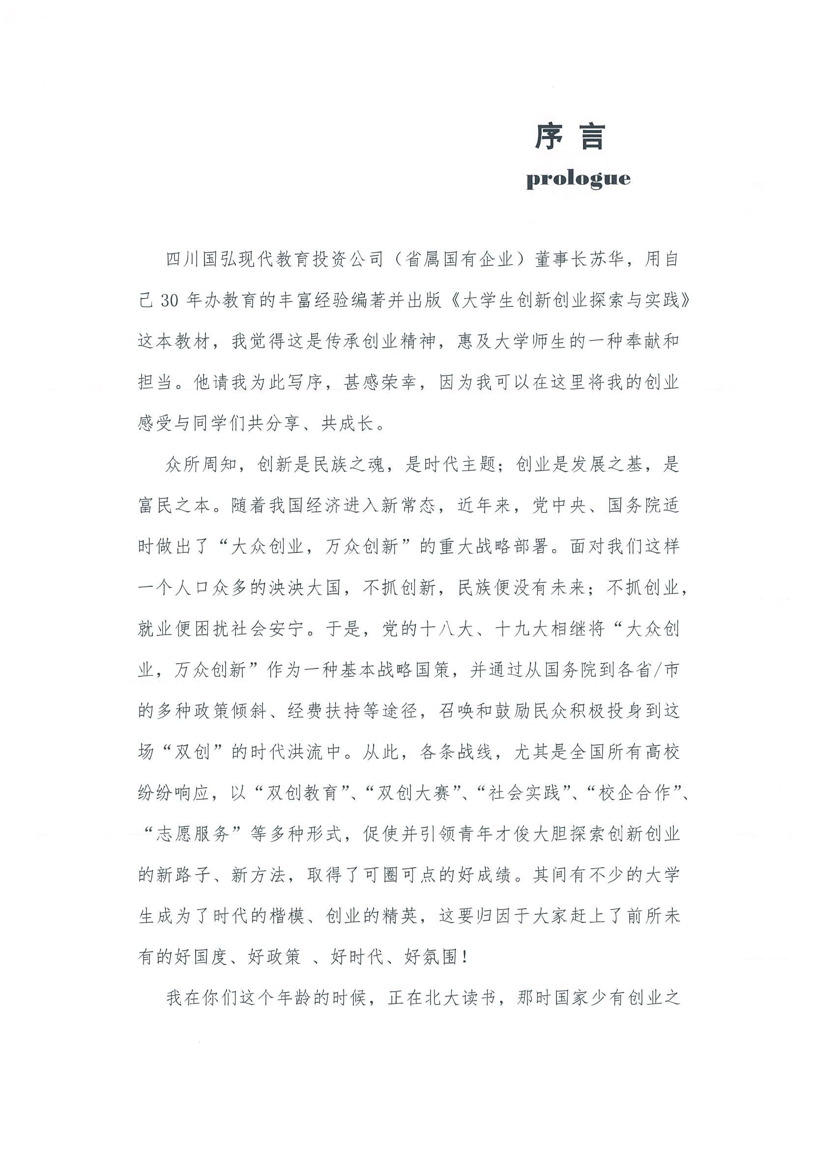 ·俞敏洪为苏华主编的《大学生创新创业探索与实践》一书作