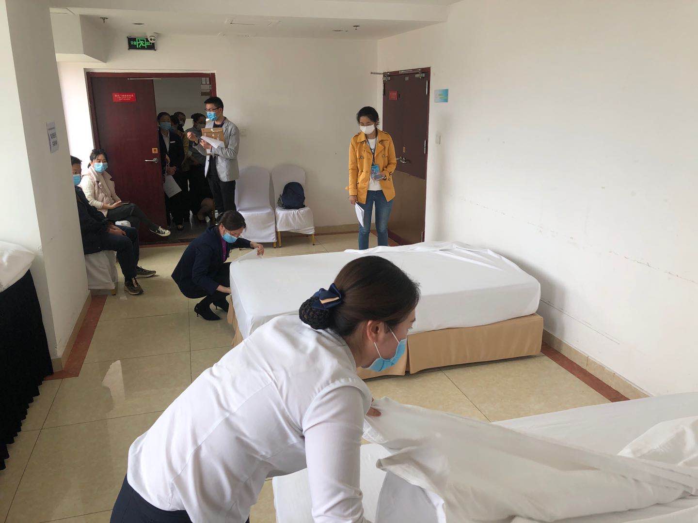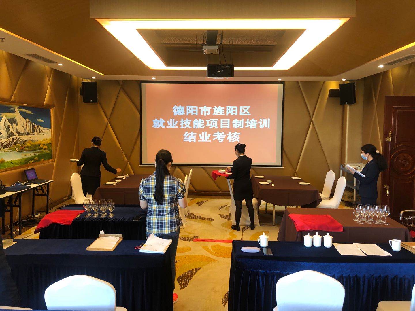 在酒店和学校的共同努力下,经过几个月的线下理论培训、实操练习和线上复习,今年4月16日,参培学员参加了由旌阳区人社局组织的结业考核,考核分为笔试和实操两部分,考核全程规范流畅、井然有序,本次就业技能项目制培训顺利结业。