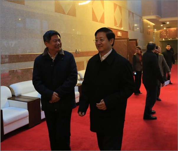 会议期间,省委常委、省纪委书记王怀臣与省政协常委苏华亲切交谈