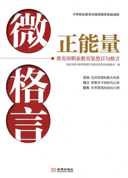 近日,由中华职业教育社黄炎培职业教育思想百句格言评选活动主委会编写的《微格言•正能量》一书出版发行。全国政协副主席、中华职业教育社理事长张榕明,民建中央常委、中华职业教育社理事、中华同心温暖工程基金会副理事长苏华,中国国土资源作家协会副主席、中国土地学会文化分会副主任周伟分别为该书作序。