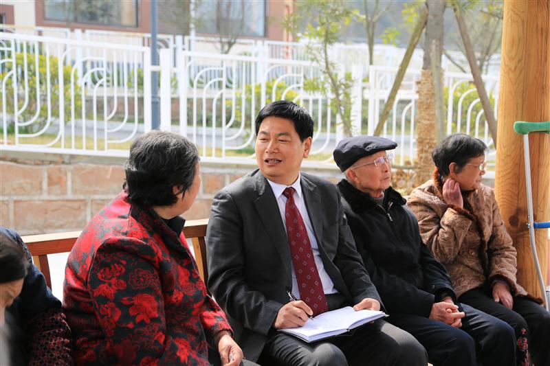 全国政协委员、民建中央常委、民建四川省委副主委苏华在德阳市美好明天老年公寓同老人交谈