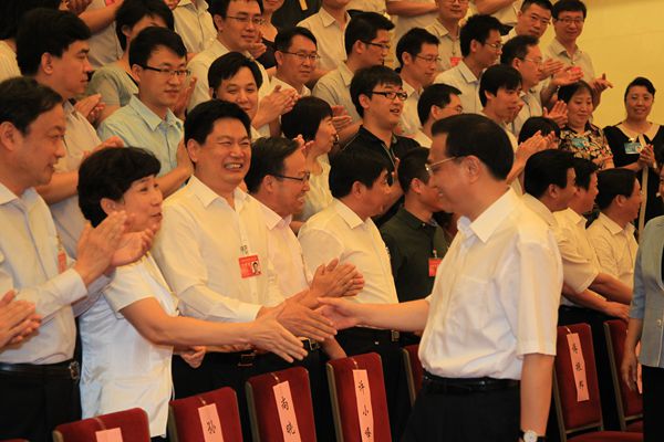2014年全国职业教育工作会议在北京召开,中共中央政治局常委、国务院总理李克强在会前接见与会代表时与董事长苏华亲切握手