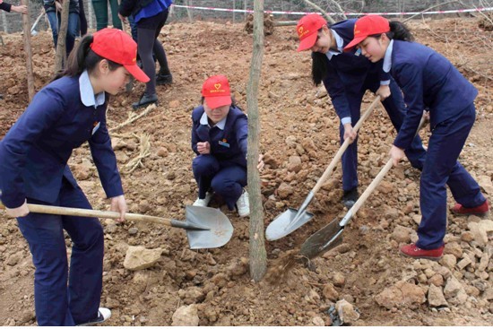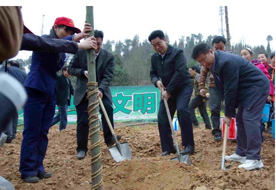 2013年3月1日上午,为促进生态文明建设共建美丽家园,旅游学校志愿者120多人参加了在石桥新村附近的植树活动。在我校志愿者和李向志书记等领导共同栽下一棵树的同时,整个植树活动有序的拉开了。在整个植树过程中,为了让每颗树都能顺利成长,志愿者发挥不怕苦不怕累的精神,多人协同努力扶直每颗大树,奋力的夯实泥土。即使手上被磨起了水泡,鞋里灌上了泥土,也毫不停留,努力栽种着每颗大树,为建设和谐美丽的新德阳奉献自己微薄的力量。