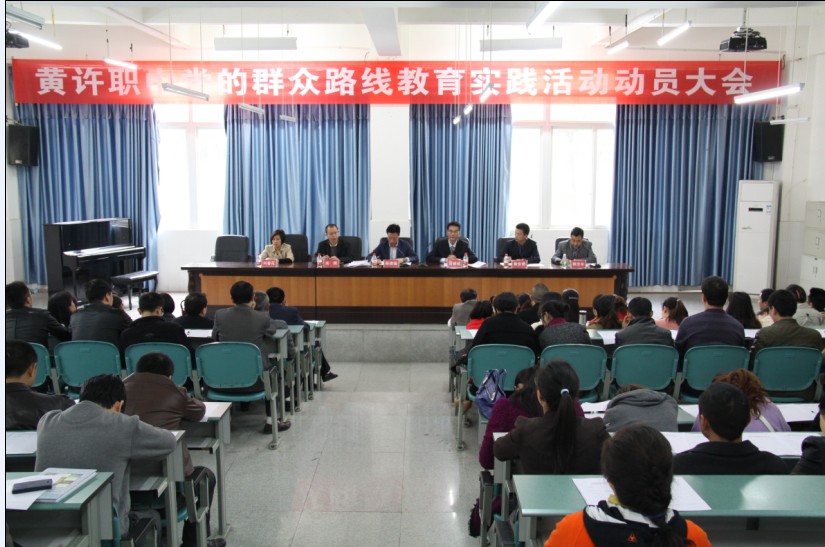 动员会上,黄许职中党的群众路线教育实践活动领导小组对此次活动进行了周密的安排部署,提出了活动的“学习教育、听取意见;查摆问题、开展批评;整改落实、建章立制”三个阶段的具体目标任务。详细阐述了第二批党的教育实践活动的重大意义,分析了目前学校存在的“四风”问题并提出了整改意见。旌阳区教育局党的群众路线教育实践活动第三督导组对学校这次活动的前期准备工作给予了充分肯定,要求在活动中要深入贯彻上级精神,对照“照镜子、正衣冠、洗洗澡、治治病”四个方面严格检查自己。要求领导干部要带头垂范,带头学习、带头听取各方意见,带头开展批评和自我批评。要求通过党的群众路线教育实践活动,达到强化内部管理,提高教学质量;加强校企合作,搞好招生就业;扩大学校规模,提高社会声誉的目的。