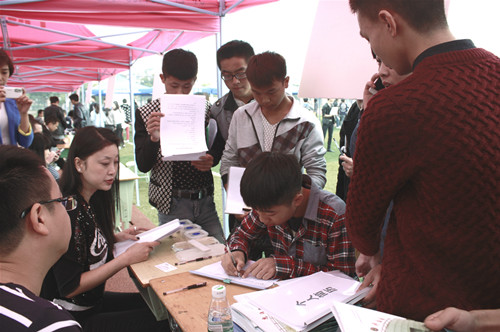 10月21日上午,黄许职中在学校运动场成功举办2014年校园招聘会。中国国际旅行社天府分社、成都华迪信息技术有限公司、成都尚丽电子商务有限公司、天马铁路(轴承)有限责任公司、特变电工(德阳)电缆股份有限公司、德阳钰鑫机械设备有限公司、德阳万路众悦一汽大众、绵阳建成电子有限公司、绵竹仟坤建筑有限责任公司等100家企业前来招聘员工,提供了涉及汽修、机械、建筑、会计、信息、商务等行业的就业岗位1000多个。2012级各专业1100余名学生参加和观摩了本次招聘会,其中533名中专层面的学生成功递交了求职申请,306名学生与企业达成一致意见,580名大专层面的学生观摩了现场招聘会。