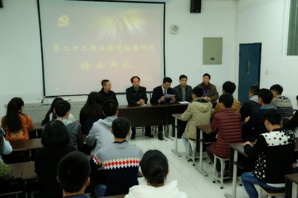 2015年11月23日下午,德阳市黄许职业中专学校42名同学参加了在党员电教室507举行的第二十二期业余党校培训班结业典礼。
