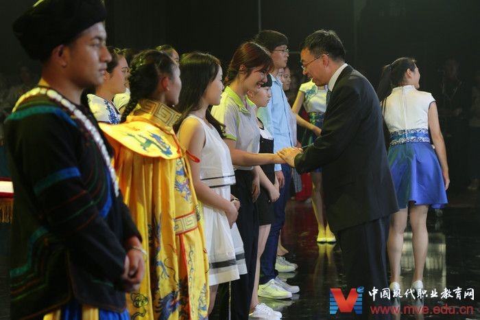 教育部职成司葛道凯司长亲自为获奖选手颁奖(左一为黄许职中毛拉哈同学)