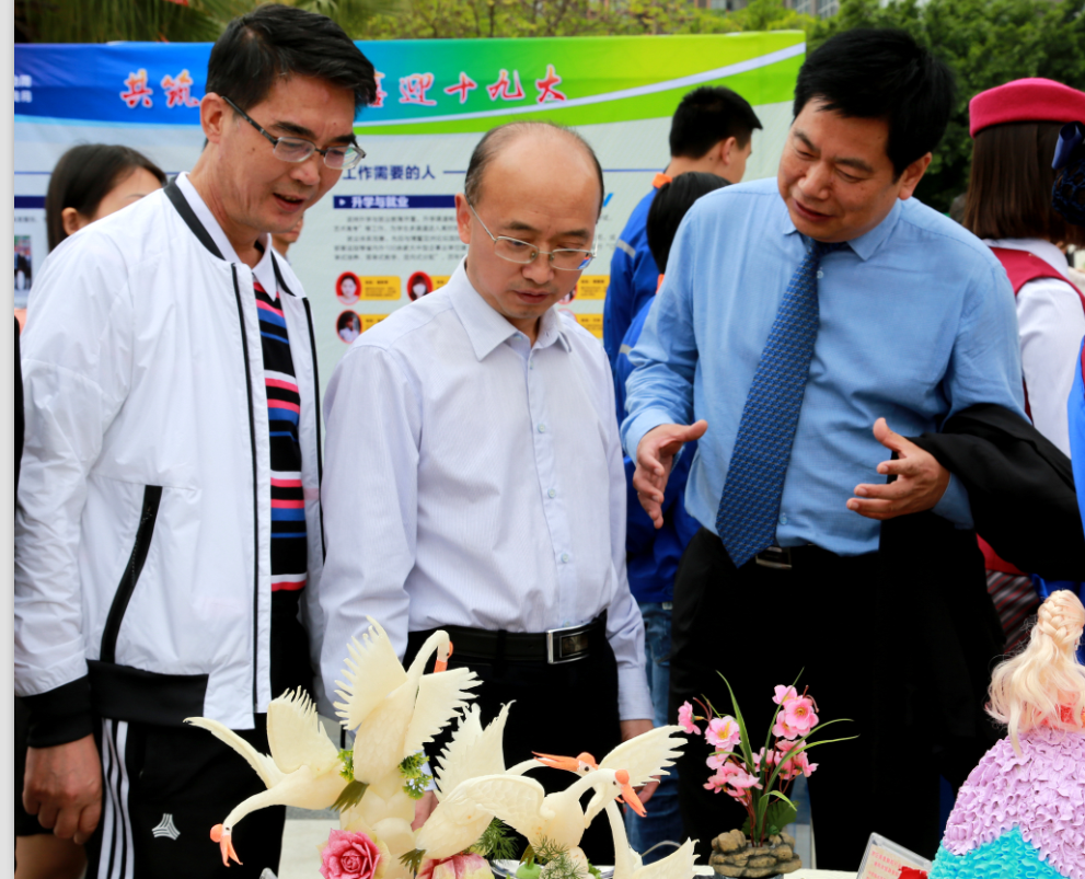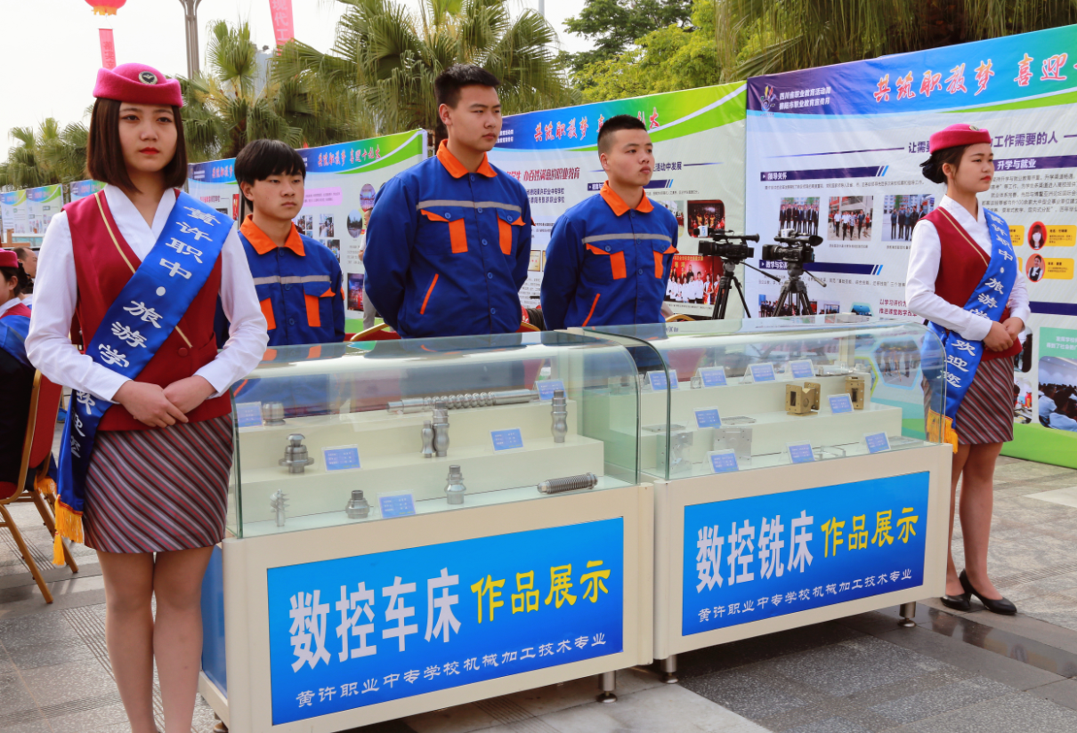 黄许职中师生代表参加了此次“共筑职教梦 喜迎十九大”宣传活动的启动仪式。黄许职中此次通过作品静态展示、文字图片视频展示、和专业技能操作展示三种方式,以规范娴熟的技能表演、技艺精湛的作品展示了黄许职中职业教育的办学成果。