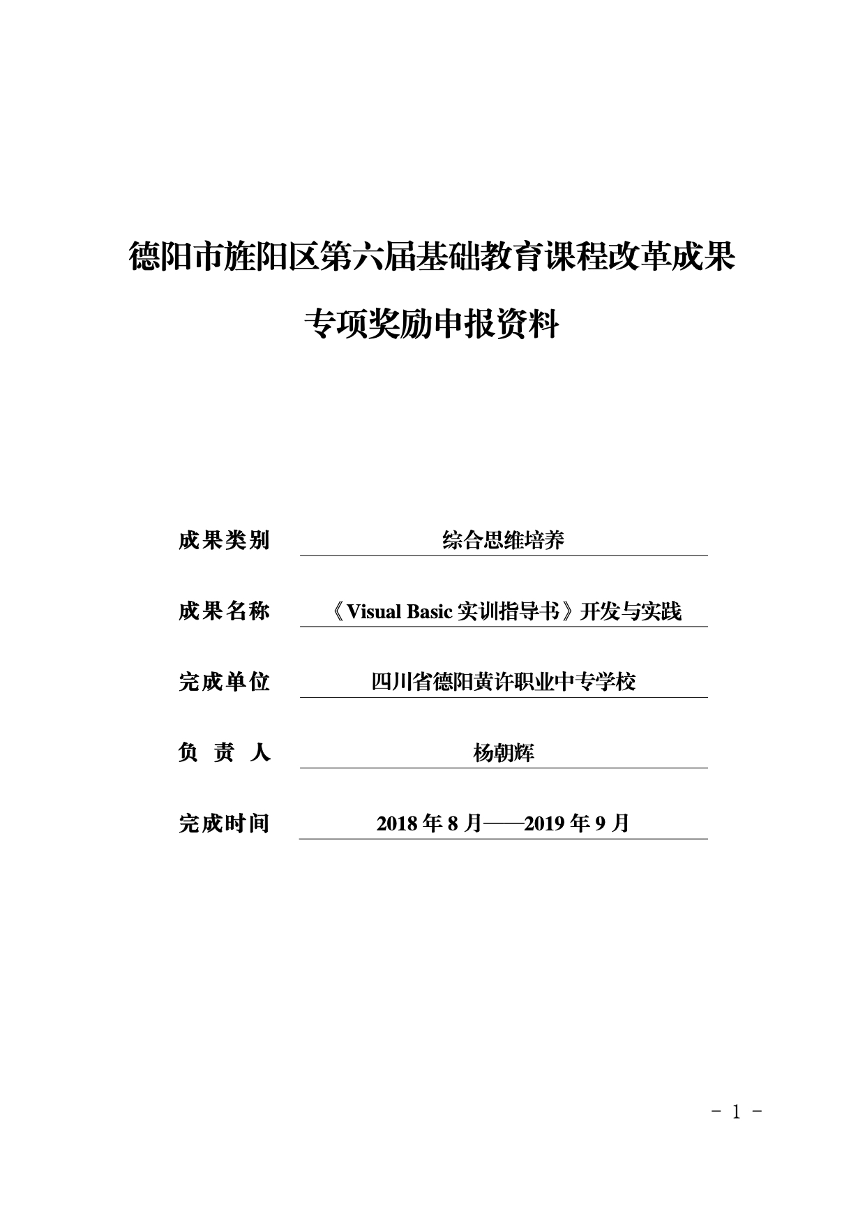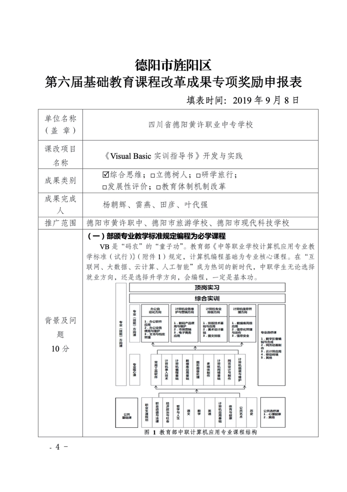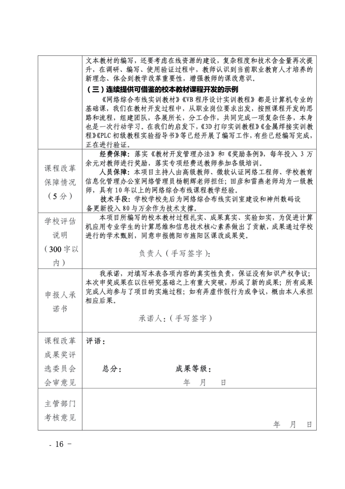 · 课程改革优秀成果申报书《网络综合布线校本教材》开发与实践