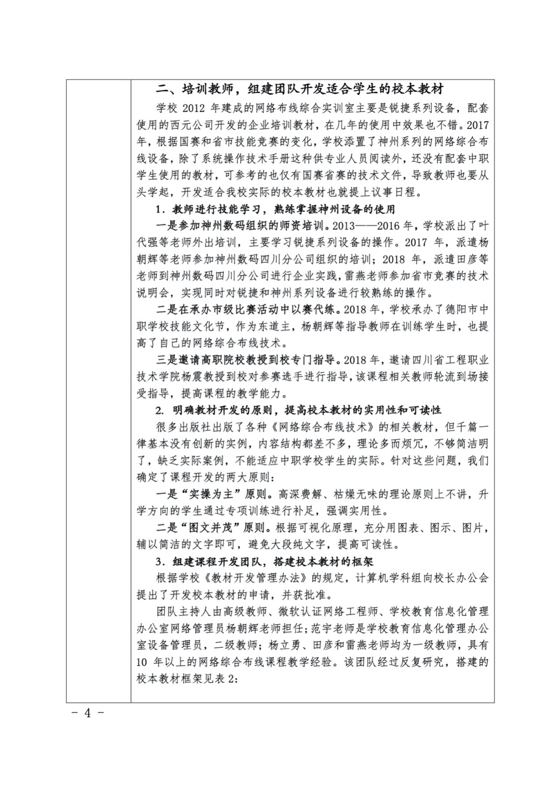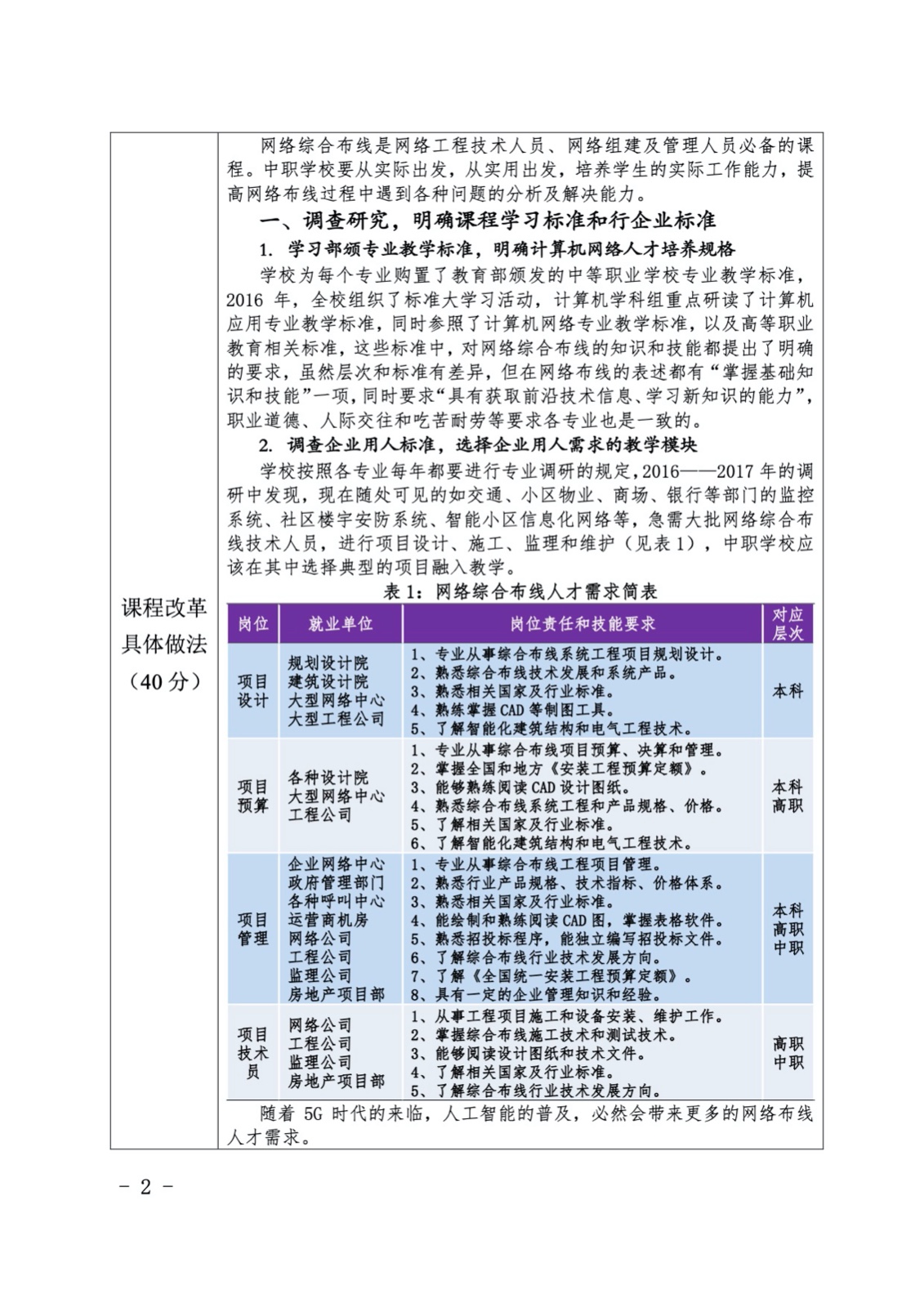 课程改革优秀成果申报书《网络综合布线校本教材》开发与实践