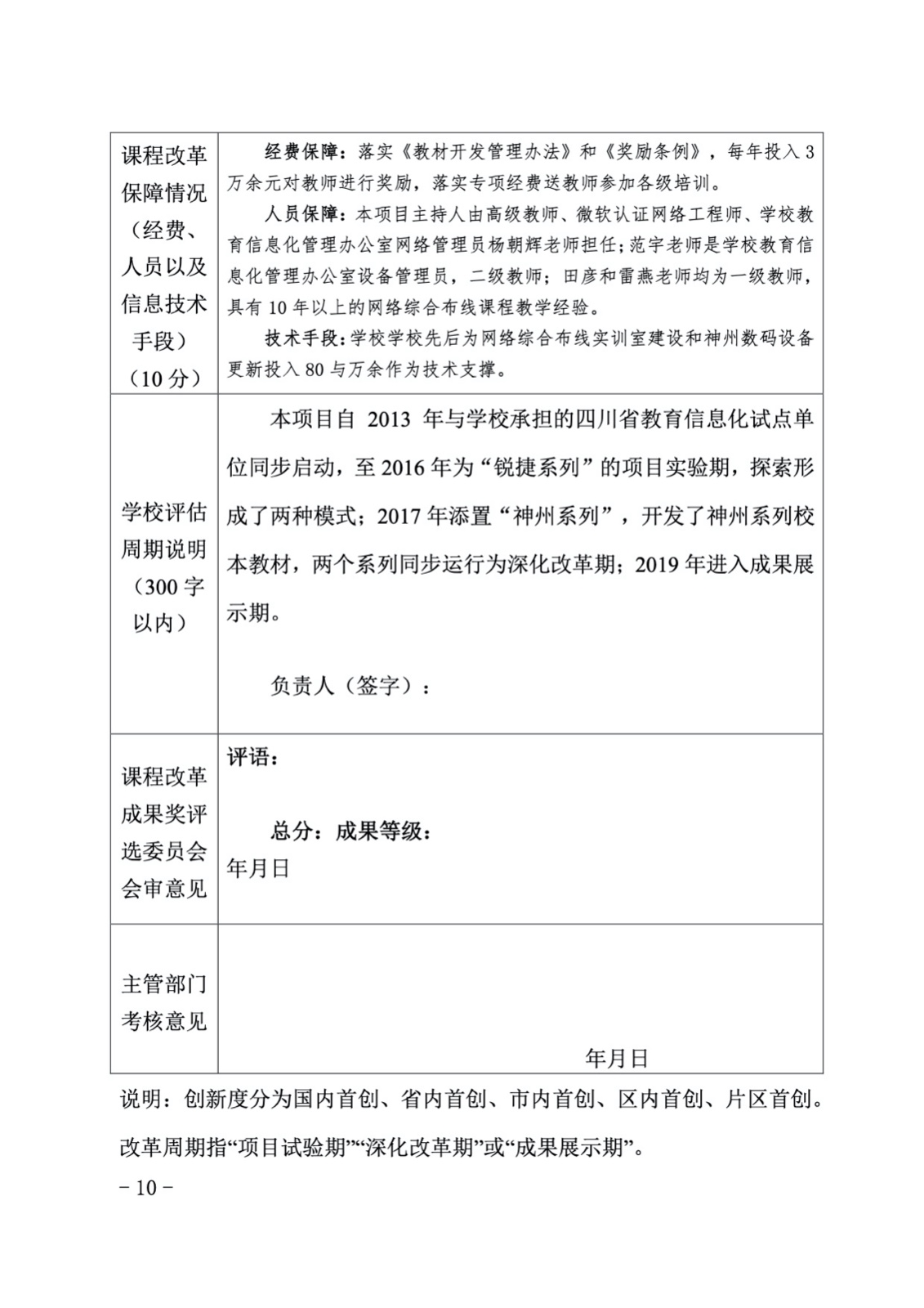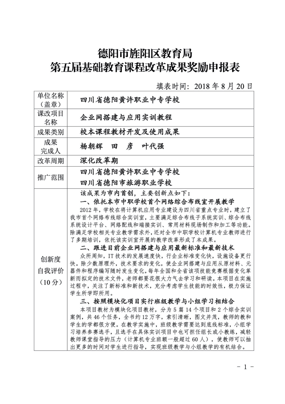 · 课程改革优秀成果申报书《网络综合布线校本教材》开发与实践