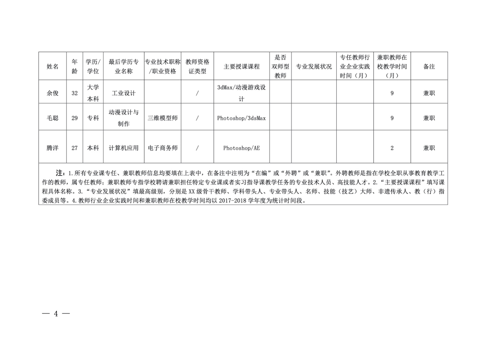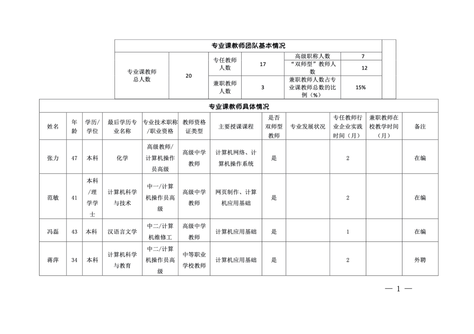 · 专业课教师团队基本情况